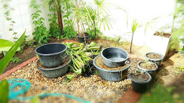 ได้มาแล้วก็ ล้างผักตบเอาเศษโคลนออกสักหน่อย พร้อมกับแช่ขุยมะพร้าวไว้เพาะด้วย สัก 1 คืน