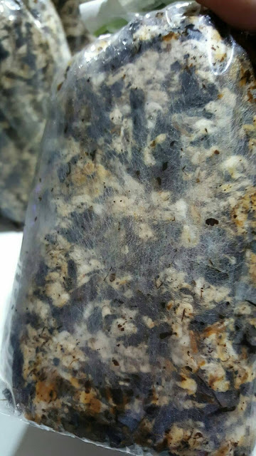 ได้วัสดุเพาะแล้ว ต่อไป มาเตรียมเชื้อเห็ดกันค่ะ เชื้อเห็ดที่ดีต้องมีใยเห็ดเดินเต็มถุง ไม่แก่เกินไป